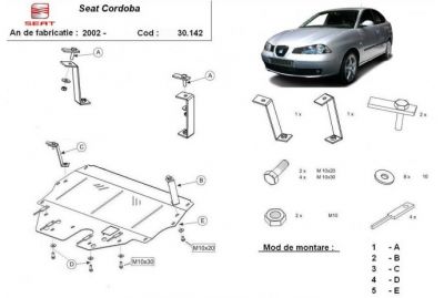 Scut motor metalic Seat Cordoba realizat dupa 2002. Acest scut motor metalic este nou si se potriveste perfect pentru toate tipurile de motorizari de Seat Cordoba dupa 2002. Scut motor ce protejeaza si cutia de viteze. Scut motor ce se livreaza impreuna cu kit-ul de montaj iar montarea lui nu afecteaza garantia. Scut motor fabricat din tabla de otel. Pentru rezistenta acest scut motor este prevazut cu intarituri longitudinale si este vopsit electrostatic. Montarea acestui scut motor nu implica modificari aduse masinii dvs. Pentru detalii contactati-ne.