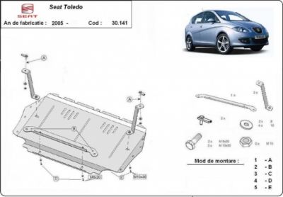 Scut motor metalic Seat Toledo incepand cu 2004. Scut motor metalic ce protejeaza motorul masinii dar cutia de viteze. Scutul motor metalic este nou si se potriveste pe toate tipurile de motorizari de Scut motor metalic Seat Toledo incepand cu 2004. Scutul motor se livreaza impreuna cu kit-ul de montaj iar montarea lui nu afecteaza garantia. Fabricat din tabla otel. Pentru rezistenta acest scut motor este prevazut cu intarituri longitudinale si vopsit electrostatic. Montarea nu implica modificari aduse masinii dvs. Pentru detalii contactati-ne.