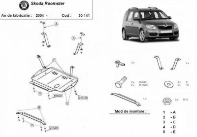 Scut motor metalic Skoda Roomster realizat dupa 2004. Scut motor metalic ce protejeaza motorul masini si cutia de viteze. Scut motor metalic nou, se potriveste perfect pentru toate tipurile de motorizari de Skoda Roomster dupa 2004. Scut motor metalic ce se livreaza impreuna cu kit-ul de montaj iar montarea lui nu afecteaza garantia. Scut motor fabricat din tabla de otel. Pentru rezistenta acest scut motor este prevazut cu intarituri longitudinale si este vopsit electrostatic. Montarea acestui scut motor nu implica modificari aduse masinii dvs. Pentru detalii contactati-ne.