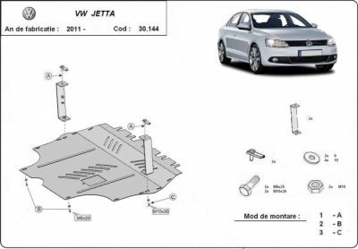 Scut motor metalic VW Jetta realizat dupa 2011. Acest scut motor metalic este nou si se potriveste perfect pentru toate tipurile de motorizari de VW Jetta dupa 2011. Scut motor ce se livreaza impreuna cu kit-ul de montaj iar montarea lui nu afecteaza garantia. Scut motor fabricat din tabla de otel. Pentru rezistenta acest scut motor este prevazut cu intarituri longitudinale si este vopsit electrostatic. Montarea acestui scut motor nu implica modificari aduse masinii dvs. Pentru detalii contactati-ne.