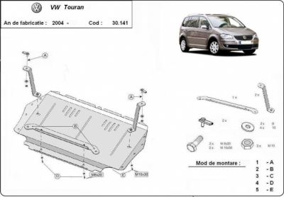 Scut motor metalic VW Touran realizat dupa 2003. Scut motor metalic si cutie de viteze ideal ptr. drumuri dificile. Scut motor metalic ce vine insotit de kit complet de montaj. Scut motor din tabla de otel vopsita in camp electrostatic, prevazut cu intarituri, aerisiri si vizita. Pentru montarea acestui scut motor metalic nu sunt necesare modificari ale autoturismului. Acest scut motor metalic se potriveste pe toate motorizarile de VW Touran dupa 2003. Acest scut motor este nou. Pentru mai multe detalii contactati-ne telefonic.