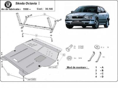 Scut motor Skoda Octavia 1U2 1U5 / Tour. Scut motor ce protejeaza si cutia de viteze. Acest scut motor vine insotit de elementele de prindere. Scut motor ce se potriveste pe toate motorizarile. Montajul acestui scut motor se face simplu oriunde fara a modifica masina dvs. Scutul este prevazut cu intarituri, aerisiri si vizita ptr. schimbul de ulei. Acest scut motor este vopsit ptr. protectie. Pentru mai multe detalii contactati-ne.