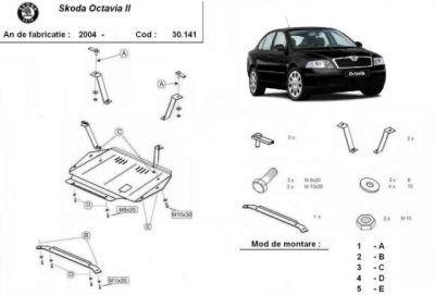 Scut motor Skoda Octavia 2 ptr modelul clasic dar si ptr cel facelift - nu si ptr. TSI. Scutul protejeaza motorul si cutia (manuala sau automata). Acest scut motor vine insotit de kit-ul de montaj. Scut motor din tabla de otel vopsita in camp electrostatic, prevazut cu intarituri aerisiri si vizita ptr. schimbul de ulei. Acest scut motor se monteaza pe toate motorizarile clasice. Acest scut motor este nou. Pentru detalii contactati-ne telefonic.