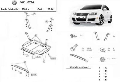 Scut motor VW Jetta 2005 - 2010 - protejeaza cutia de viteze si baia de ulei. Scut motor ce se potriveste pe toate motorizarile clasice (nu si ptr. tsi). Scut motor din tabla de otel cu intarituri. Acesr scut motor vine cu de kit-ul de montaj inclus. Montajul acestui scut motor se poate face la orice service. Acest scut motor este nou si este vopsit in camp electrostatic. Pentru mai multe detalii contactati-ne.