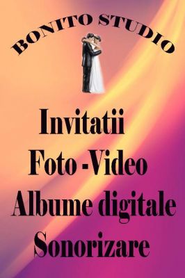 Seva Amintirilor Perfecte este numai cu BonitoStudio Srl si va pune la dispozitie : Invitatii NUNTA-BOTEZ-ONOMASTICE, Foto , Video , Sonorizare , Albume Digitale pentru orice ocazie si absolvire a claselor primare sau de liceu , Design de orice fel , Materiale Publicitare de orice fel si Developare de orice marime a Fotografiilor ..... Bonito Studio poate fii contactata prin e-mail : bonitostudio@yahoo.com si pe facebook : www.facebook.com/bonitostudio & www.bonitostudio.jimdo.com