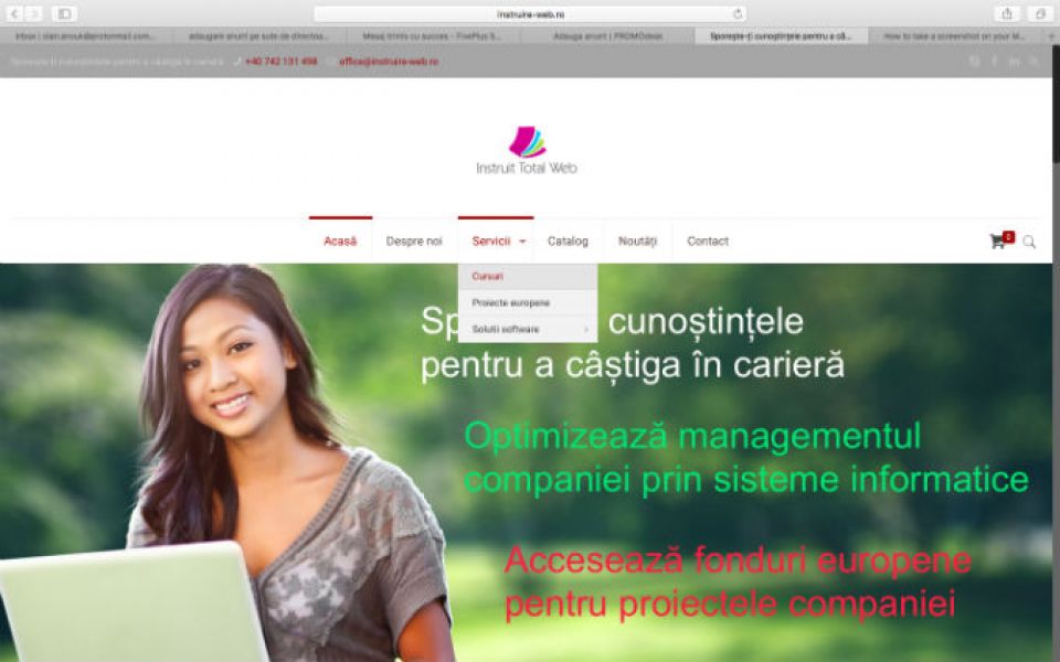 - Poti pregati examenul la MATE si INFO, online, far profesor, dar monitorizat de catre un cadru didactic universitar, GRATUIT pana la data de 1.10.2017, si cu abonament lunar de 50 lei, dupa aceasta data. Vrei sa te initiezi in limbajul de programare Java? Ai nevoie de servicii IT diverse (website-uri, arhivare electronica si managementul documentelor, managementul clientilor si al contractelor, dezvoltare personalizata) de maxima eficienta calitate/pret ? Vrei sa accesezi fonduri europene pentru derularea de proiecte? Accesati http://www.instruire-web.ro si veti avea la dispozitie, in sectiunea Servicii toate informtiile necesare. Va rugam sa ne contactați pe email la office@instruire-web.ro sau telefonic la +40742.131.498.