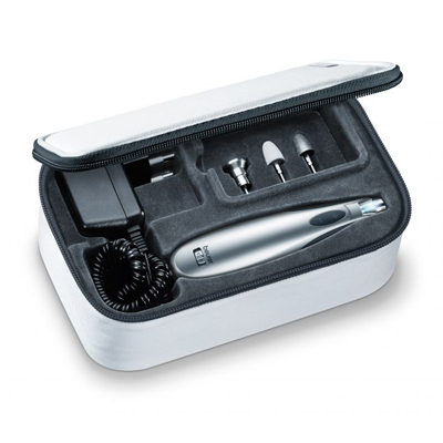 Vand set manichiura pedichiura Beurer MP 61, prevazut cu 9 accesorii de calitate pentru rezultate profesionale, functioneaza atāt in sensul acelor de ceasornic, cāt si invers, cu lumina de LED, include geanta de stocare, set nou nout, din magazin online, transport prin curier oriunde in tara.