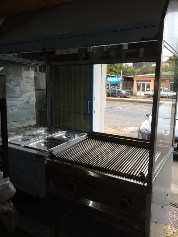 Bain marie cu gratar roca vulcanica stand cu geam securizat si hota inox dimensiuni: 1500*800*2140mm dimensiuni gratar 80*70cm si bain marie 70*70cm pret 2800 Euro+Tva. Produs nou cu garantie 12 luni!