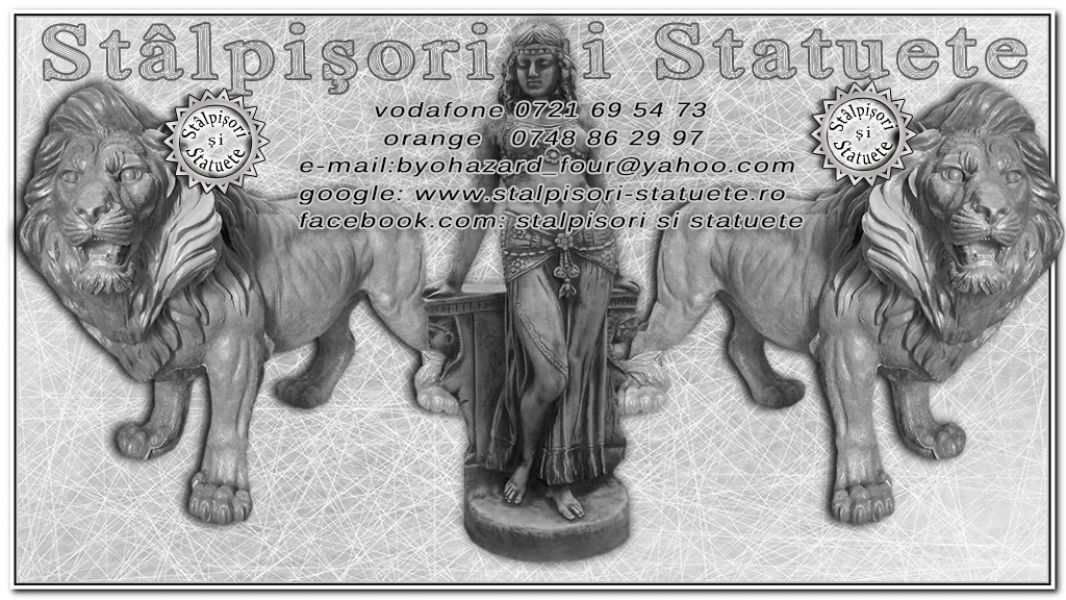 Ma puteti contacta la adresa de facebook, stalpisori si statuete, pe site web www.stalpisori-statuete.ro sau la numarul de telefon 0721 69 54 73.