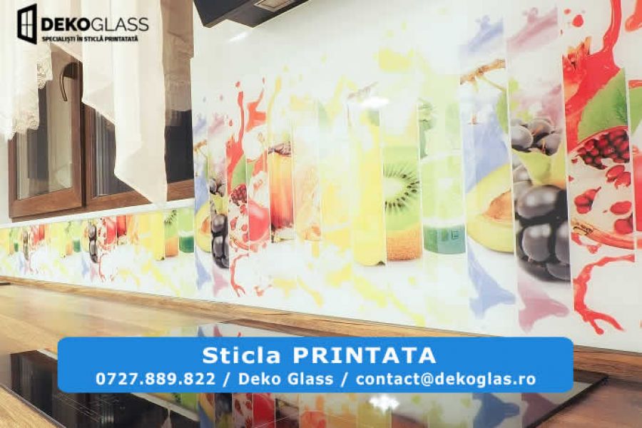 - Deko Glass Bucuresti iti ofera sticla printata pentru bucatarie si baie la cel mai bun pret! Iti oferim si reducere la comanda de peste 5 metri liniari ca sa te convingi de calitatea sticlei printate oferite de noi! Sticla bucatarie printata sau colorata, securizata, ultraclara, termorezistenta, cu decupaje de priza incluse. Placarea cu sticla printata sau colorata se poate folosi cu succes pentru un design modern. Placarea cu sticla se poate realiza in bai, zonele de lucru din bucatarii, dar si zone de trafic intens din interiorul spatiilor comerciale si cladirilor de birouri (receptii, holuri, baruri, cabinete medicale, saloane de infrumusetare etc.). Alege dintre sute de modele de print unice. Grafica la alegere! Iti oferim si asistenta la montaj si masuratoare. Experienta de 12 ani in prelucrarea si montajul sticlei ne recomanda! Livrare rapida oriunde in tara! Montaj si transport inclus. Consultanta tehnica GRATUITA!