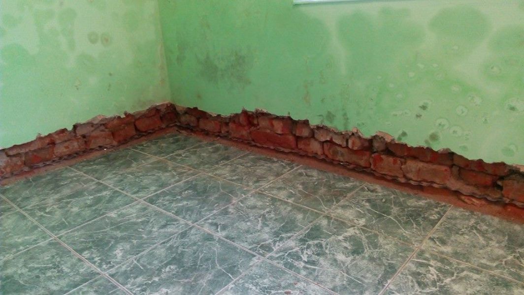 Sistemul presupune introducerea la baza peretelui a unei bariere hidroizolante din placi ondulate inoxidabile rezistente la coroziune,saruri si a altor elementi chimici.