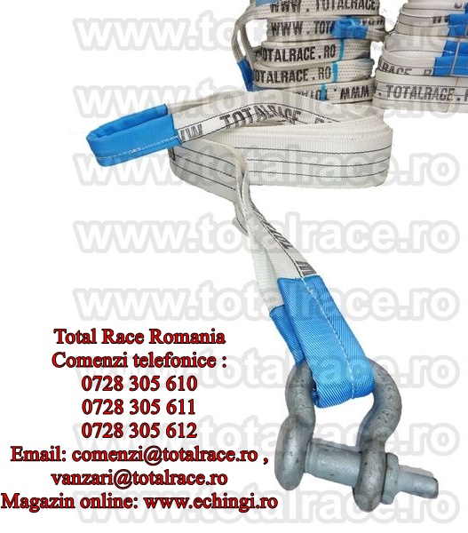 Total Race Romania comercializeaza chingi tractare / remorcare / recuperare / troliere de MBL 10 tone cu lungime de 4 metri , alte lungimi la cerere, culoare ecru , latime de banda 90 mm, sufe remorcare textile din poliester fabricate in 2 straturi cu protectii pe urechi productie Olanda .