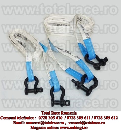 Total Race Romania comercializeaza chingi tractare / remorcare / recuperare / troliere de MLB 5 tone cu lungime de 3 metri / 4 metri / 5 metri,alte lungimi la cerere , culoare ecru , latime de banda 50 mm, sufe remorcare textile din poliester fabricate in 2 straturi cu protectii pe urechi productie Olanda .