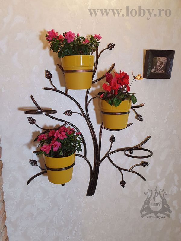 - Acest suport de ghivece din fier prevazut cu cinci inele poate sustine florile preferate. Cu una, doua sau mai multe flori, el reprezinta in sine un obiect decorativ chiar si in perioadele de iarna.