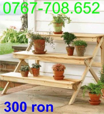 • Utilizare: suport din lemn pentru ghivece sau jardiniere, nu ocupa mult spatiu, se poate utiliza atat in casa, cat si afara.