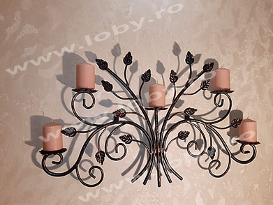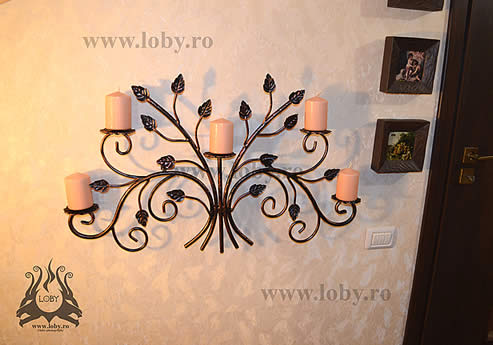 Suport pentru lumanarii din fier forjat, un obiect decorativ pentru perete, un cadou perfect pentru orice ocazie, lumanarile nu sunt incluse. Executat din fier forjat, produs 100% fabricat in Romania, este alegerea perfecta pentru a va decora casa .