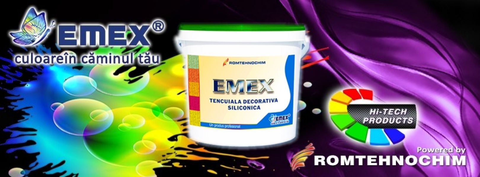 Tencuiala Decorativa Siliconica EMEX este un produs profesional pe baza de rasini acrilice si siliconice, aditivi specifici si fileri, cu adaos de cuart si granule de marmura de diverse marimi, destinat finisarii decorative superioare a tencuielilor, cu aspect final striat, mat. Are o aderenta exceptionala, rezistenta foarte mare si nu permite murdariei sa adere la suport. Contine biocizi ecologici, de ultima generatie, lucru ce ii confera o buna rezistenta la fungi si mucegaiuri. Se fabrica in orice nuanta conform cartelei NCS, sau poate fi colorata cu paste de colorare.
