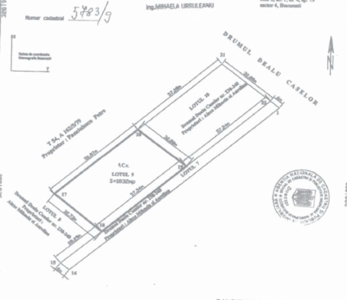 Terenul are o deschidere de 57.54 ml la Drumul Dealul Caselor si de afla in intravilanul Municipiului Bucuresti, sector 4.