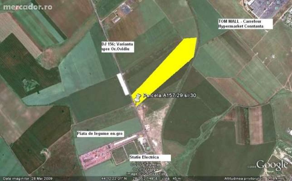 - Proprietar, vand Teren extravilan 9000mp in imediata vecinatate a intravilanului Mun. Constanta cu destinatie agricola sau industriala, deschidere 16.5 m la DJ156 (varianta spre Or.Ovidiu), peste drum de Piata de legume en-gros si/sau spate in spate cu Carfour. Utilitati la 60 m pe aceeasi parte a drumului judetean. Contact 0723526262/ eleven.emil @gmail. com