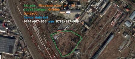 - Proprietatea cu supfrata totala de 24.548 mp, este amplasata in zona de est a Municipului Oradea pe strada Micsandrelor nr. 36 in aproapierea fostei Fabrici de Ulei. Zona este in plina dezvoltare imobiliara fiind la marginea urbiei dar totusi in oras se preteaza atat unor dezvoltari rezidentiale cat si unor centre comerciale si/sau logistice; in apropiere se gasesc centrele comerciale Metro Cash and Carry, Plastor precum si diferite showroomuri si benzainari de pe Calea Clujului. Terenul este dotat cu cale ferata industriala, toatea utilitatiile : Apa potabila, Canalizare, Internet, Telefon, Curent electirc 220v si 380v,Incalizare centrala proprie combustibil solid, Cantar pod bascula de 16 TO recent modernizata si autorizata metrologic.
