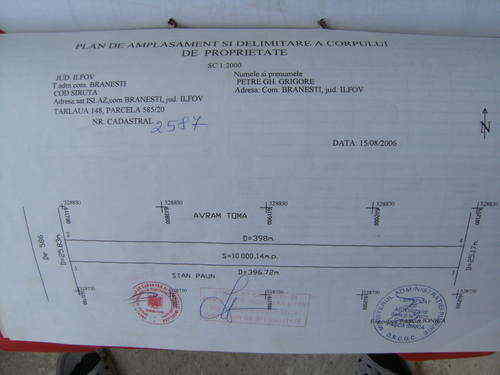 - Proprietar vand-Teren extravilan in Localitate Branesti sat Islaz Judet Ilfov 10.000mp cu deschidere 26m distanta sat 950m si fata de noua zona a intravilanului 500m.Terenul este situat intre calea ferata(halta)si A2.Cadastru si intabulare.Terenul nu are inalta tensiune pe el nici pe langa el,fara conducte sub el,poate fi introdus in intravilan si ulterior parcelat.Linie stalpi curent electric media tensiune la 370m.Pret 2 euro/mp nediscutabil.Pt.schimb 3 euro/mp.Proprietatea se afla spre padurea Zoicaru -Distanta Reala Cora Cartierul Pantelimon Teren.15.Km.Tel.0761329671,0725065443