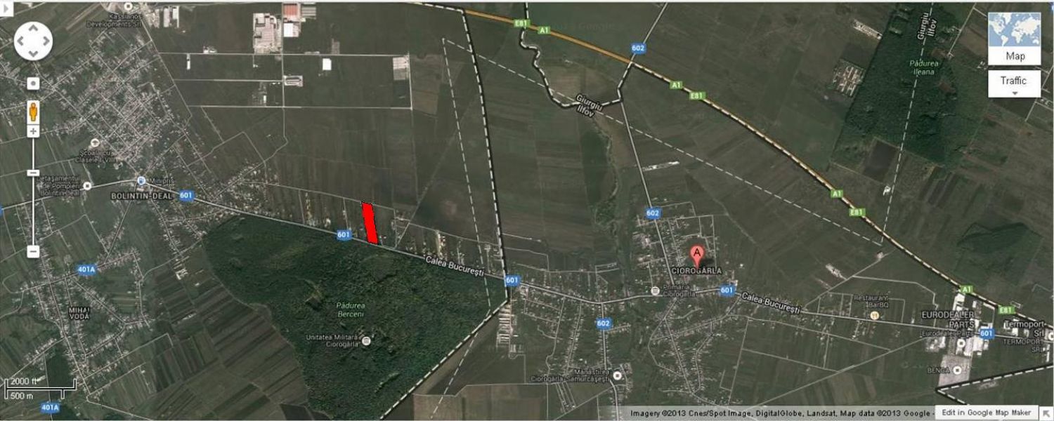 Teren Bolintin Deal(intre Bolintin Deal si Ciorogarla) vis-a-vis padure, soseaua principala(asfalt) gaze, electricitate, apa(acces la doua strazi) 5500mp, pret avantajos, zona linistita…. Terenul se afla la 10 km de Bucuresti/7 km de Carrefour Militari