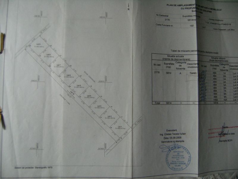 compacta 30m lotizat in 646mp cu o deschidere pt.fiecare lot.22m cu drum de acces la loturi care este din propriul teren avand latime 7.5m totodata acesta conexeaza doua planuri avand deschidere la ambele capete drum de iesire-intrare catre loturi.Conf.Cert.Urbanism este Destinatie Mixta atat pt.C-tii.civile dar si pt.Industriale fiind util pt.Case,vile dar si pt.Hale,depozite,ateliere de productie,samd.Gaze,curent,apa la 200m de linia caselor.Certificat Urbanism.P.O.T.35% C.U.T.0,9h.max(la cornisa)10m.Cadastru si intabulare.Copaceni nu este Adunatii Copaceni,sunt localitati diferite cu judet diferit.Teren plat cu denumire de strada si numar postal pt.toate loturile,locatie in Str.Bradului nr.60-Strada privata.Accesul la teren se face pe asfalt prin Str.Nucului latime 12m.Drum balastrat si pietruit pana la teren.Lot 2 si Lot 9 sunt date.Tel.0761329671,0725065443. -