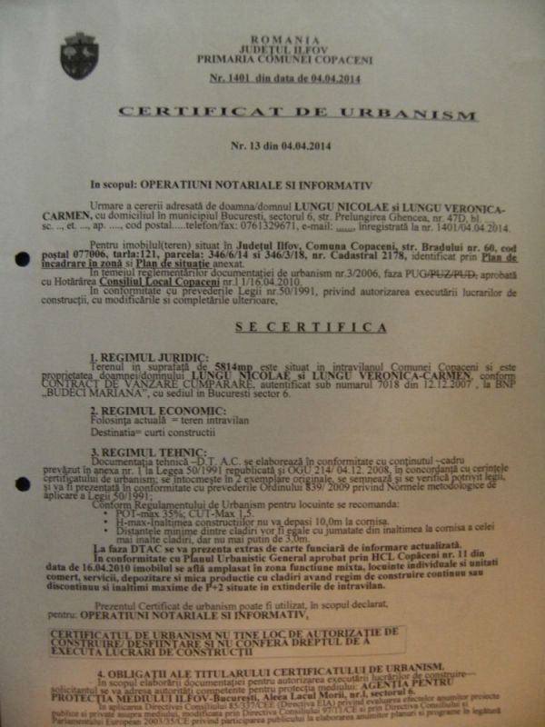 Spune-ne parerea ta despre anuntul "Teren Intravilan Loturi C-tii Destinatie Mixta Copaceni Ilfov".