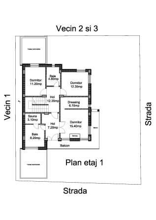 Deschidere la doua strazi (pe colt) cu laturile de 20m x 17m; strazi asfaltate;