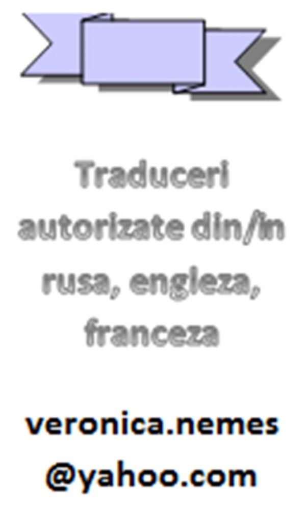 - Traducator autorizat de Min. Just. efectuez traduceri de calitate la preturi accesibile din/in rusa, engleza, franceza in orice zi a saptaminii. Daca e cazul, asigur si legalizarea documentelor. 0728 988 930 sau veronica.nemes@yahoo.com sau www. veronicanemes.ro,