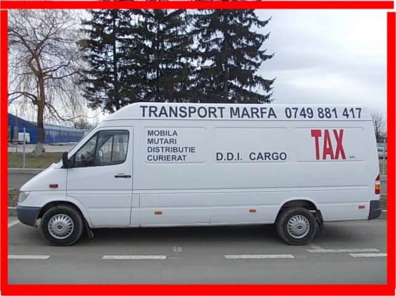 - Transport marfa, mobila, mutari, distributie, curierat, diverse colaborari, cu autoutilitara Mercedes Sprinter Maxi in conditii optime si LEGALE. Dimensiuni duba: L - 4, 2 m, h - 2 m, l - 1, 8 m. PRETURI MINIME, inclusiv factura. Tel: 0749881417 sau 0756337735.