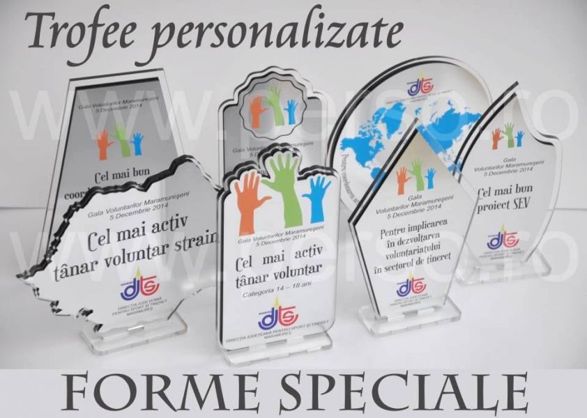 - Comandati trofee din acryl personalizate 100%, color cu print UV, rezistent si durabil sau prin gravura laser, trofee Plexiglas unicat, trofee realizate cu orice forma si grafica, trofee scoala, trofee eveniment, trofeu corporate, trofeu event, trofee concursuri, trofee competitie, trofee cursant, trofee elevi, trofee scolare, trofee liceu, trofeu speciale gala, trofee economice, trofee ieftine, trofee personalizate premium, premii si trofee din diferite materiale: lemn, sticla, plastic, aspect metalic, trofee metal, trofee acril vopsite, trofee urgente, trofee rapide, trofee blanc, trofee forme atipice, trofee laureati, trofee copii. Detalii si comenzi la info@perso.ro si pe www.perso.ro