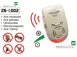 - Aparatul antirozatoare, antiinsecte combina actiunea ultrasunetelor cu puterea undelor electromagnetice alungand daunatorii (soareci, sobolani, rozatoare, insecte taratoare, gandaci de bucatarie, gandaci de Colorado, muste, tantari, termite, capuse, carii de lemn) chiar si din cele mai greu de patruns locuri.
