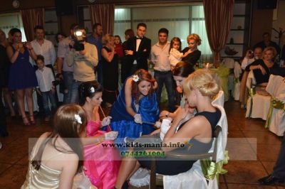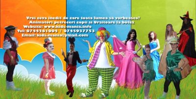 - Tocmai ati devenit parinti si va doriti ceva deosebit la petrecerea de botez al copilului dumneavoastra? Echipa KidsMania va ofera spectacole cu 3 sau 4 zane ursitoare la botez, care vor interactiona cu invitatii dumneavoastra si vor face un spectacol pe care cu siguranta o sa-l tineti minte. Textul este mereu LIVE si PERSONALIZAT la fiecare eveniment.Desi suntem din Iasi, ne deplasam in orice locatie din Suceava, Bacau, Neamt, Botosani, Vaslui, etc. Oferim animatori costumati in clowni, printese si personaje Disney pt petrecerea copilului dvs, picturi pe fata,modelaj baloane si concursuri. Detalii pe www.kids-mania.info sau pe www.facebook.com/kidsmania.iasi