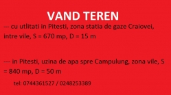 - cu utlitati in Pitesti, zona statia de gaze Craiovei, platou cu vile, intre vile, S = 670 mp, D = 15 m