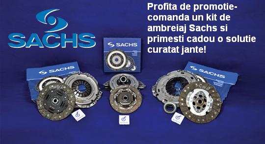 - Profita de promotie: comanda un kit ambreiaj Sachs si primesti CADOU o solutie de curatat jante in valoare de 45 lei. Consult Piese Auto Market vinde si distribuie volante masa dubla, kit-uri ambreiaj, rulmenti presiune, cilindri ambreiaj pentru toata gama de autoturisme. Daca comandati de minim 300 lei primiti transport gratuit prin curier rapid in tara si in Bucuresti. Mai multe detalii si promotii la 0213372647 sau 0721942016 si pe www.consult-piese-auto.ro
