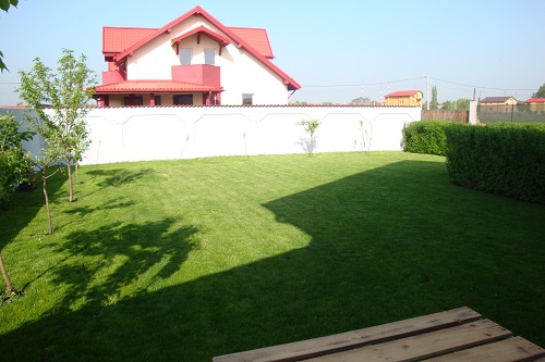 aplicata manual cu o instalatie speciala. La exterior se gaseste o peluluza de aproximativ 300mp cu system automatizade irigare, pomi fructiferi altoiti, vita de vie, un gratar zidit cu afumatoare incorporata, o magazine de 14mp si un beci de 5mp. 0746058304