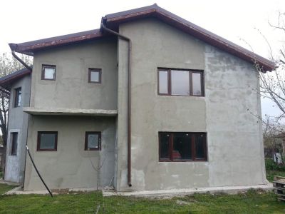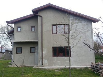 - CASA la gri, situata in com. Gradistea, Ilfov, cca 30km de Bucuresti, zona lacul Caldarusani, suprafata locuibila 187 mp, P + E, gaz, electricitate, acoperis tabla Lindab cu certificat de garantie pe 50 de ani, Geamuri termopan Bauplast, apa, canalizare/fosa septica, cadastru, intabulare, nr postal, teren 921 mp, deschidere 23 m, gard beton.