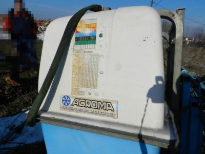 Vand masina de erbicidat, tip purtat, model Agroma, capacitate de 1000 litri, lungimea bratelor 12 metri.