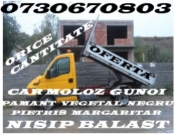 - VAND / LIVREZ NISIP ( 0 - 1 )mm CEL MAI FIN, NISIP ( 0 - 3 )mm, MARGARITAR ( 4 - 8 )mm, PIATRA MICA ( 8 - 16 )mm, PIATRA MARE ( 16 - 32 )mm, BALASTRU ( 0 - 16 )mm, REFUZ DE CIUR ( 32 - 64 )mm, PIATRA CONCASATA, PIATRA SPARTA, PAMANT NEGRU VEGETAL DE FLORI SI GRADINA, PAMANT UMPLUTURA - CARAM MOLOZ DE LA DEMOLARI SI EXCAVATII, GUNOAIE, CRENGI.... – ORICE ORIUNDE ORICAND SI ORICE CANTITATE. Tel: 0767688375, 0730670803. WWW.TRANSPORT-NISIP-BUCURESTI.COM
