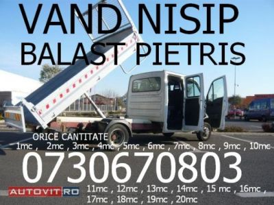 - TEL 0730670803 - VAND NISIP ( 0 - 3 ) mm , MARGARITAR ( 4 - 8 ) mm , PIATRA MICA ( 8 - 16 ) mm , PIATRA MARE ( 16 - 32 ) mm , BALASTRU ( 0 - 16 ) mm , REFUZ DE CIUR ( 32 - 64 ) mm , PIATRA CONCASATA , PIATRA SPARTA , PAMANT NEGRU VEGETAL DE FLORI SI GRADINA , PAMANT UMPLUTURA - CARAM MOLOZ DE LA DEMOLARI SI EXCAVATII , GUNOI , CRENGI ..... ORICE ORIUNDE ORICAND - DE LA 1 mc . . . . .. . 22 mc. ADU,10 Lei