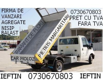 - VAND NISIP ( 0 - 1 ) mm CEL MAI FIN , NISIP ( 0 - 3 ) mm , MARGARITAR ( 4 - 8 ) mm , PIATRA MICA ( 8 - 16 ) mm , PIATRA MARE ( 16 - 32 ) mm , BALASTRU ( 0 - 16 ) mm , REFUZ DE CIUR ( 32 - 64 ) mm , PIATRA CONCASATA , PIATRA SPARTA , PAMANT NEGRU VEGETAL DE FLORI SI GRADINA , PAMANT UMPLUTURA - CARAM MOLOZ DE LA DEMOLARI SI EXCAVATII , GUNOAIE , CRENGI .... ORICE ORIUNDE ORICAND SI ORICE CANTITATE,10 Lei