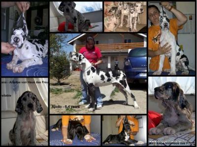 Canisa Haus das Freude vine pui dog german arlechin, negru si marmorati din parinti arbitrati. Puii au varsta de 4 luni, pedigree tip A, microcip, pasaport, vaccinatie completa. 300 euro tel. 0765233395