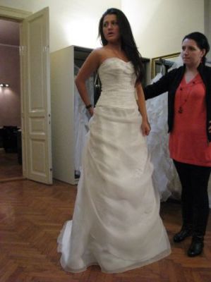 - Vand rochie de mireasa Pronovias , colectia 2010, din matase naturala brodata cu cristale Swarowski si tafta, culoare ivory . Rochia are trena detasabila. Ofer gratis voalul rochiei de 3,5 m lungime.,3000 Lei