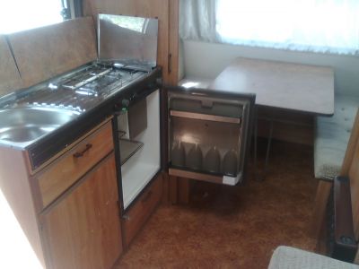 frigider pe gaz,12v si 220v, totul functionabil,dulapuri depozitare,spoturi, perdele tantari,