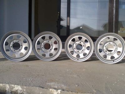 - Vand seturi de jante 4x4 6Jx15 inch in 6 gauri x139.7mm sablate si vopsite albe in cabina de vopsit cu ET negativ pentru japoneze cum ar fi TOYOTA,MITSUBISHI,NISSAN,ISUZU,ETC.Jantele nu sunt lovite, sudate sau zgariate.La cerere se pot incalta cu anvelope 245/70/R15 /200Euro set.