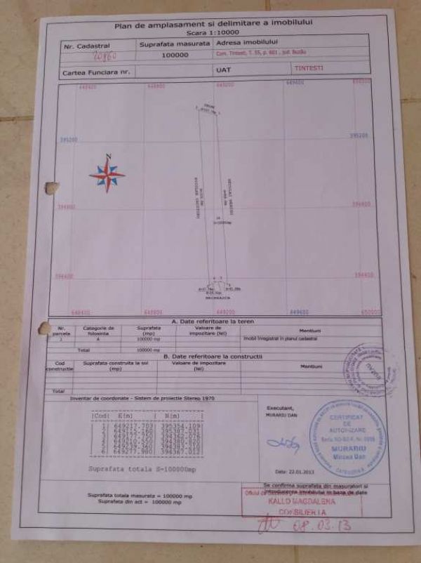 - Particular vand teren arabil extravilan in suprafata de 10 ha , sola compacta, in comuna Tintesti , jud Buzau. Pret: 42000 Euro , 4200 Euro/ ha. Contact: 0765679512 , anteogrup@yahoo.com