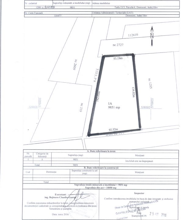 Proprietar direct , vind teren intravilan cu suprafata de 10.000 mp sau LOTURI care urmeaza a fi DEZMEMBRATE din acest teren , dupa incheierea unui ANTECONTRACT DE VANZARE CUMPARARE AUTENTIC si dupa plata unui AVANS !.