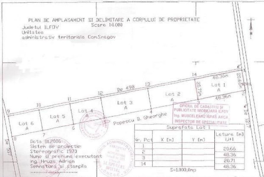 - Particular, vand teren intravilan in Snagov, sat Ghermanesti, Strada Plevnei, 1000m2, deschidere 48m, ideal pentru casa, utilitati. Pret 30 Euro/ mp.