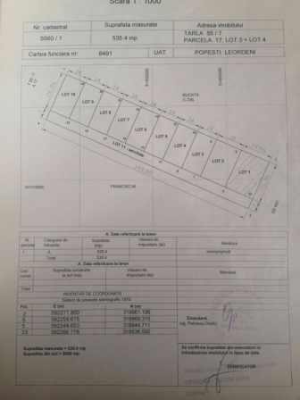 - Vand Teren intravilan in Popesti Leordeni, pe strada Miraslau in suprafata totala de 1285mp, lotul 2 are 611 mp - 18x33,96 si lotul 1 are 674 mp -19.86x33,96 intravilan . Pretul este de 58,5 Euro/ mp negociabil. Terenul este parcelat ,are cadastru si intabulare , dubla deschidere la strada Miraslau si la aleea de servitute si utilitati in apropiere. Drumul de servitute are o latime de 7m.